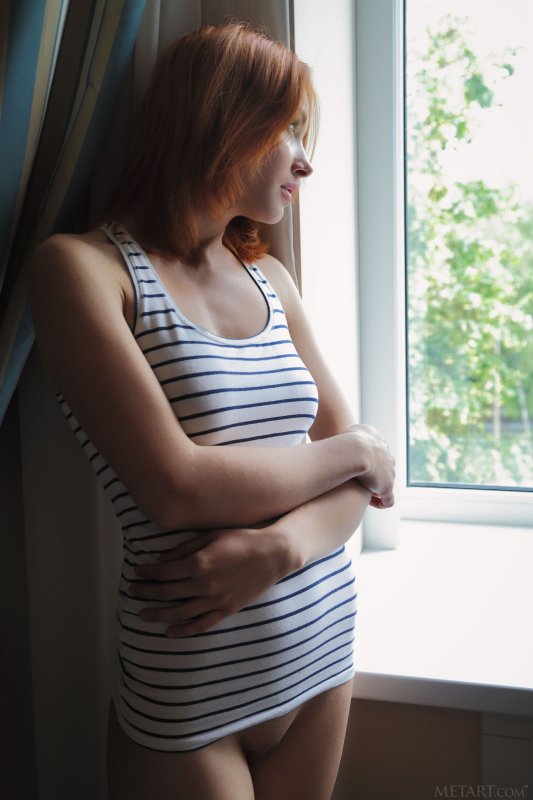 Раздевшись дома у окна, грудастая рыжуха в дальнейшем располагается на диване и показывает голое сексуальное тело, параллельно поглаживая себя руками. Наслаждаясь происходящим, сексуальная девушка охотно продемонстрировала натуральные сиськи, а затем раздвинула ножки лёжа на спине и позволила взглянуть на бритую киску.