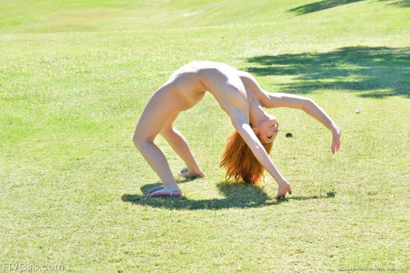 Гуляя на улице, рыжая улыбчивая девушка в какой-то момент задержалась на газоне и разделась догола, начала эротично выгибаться и показывать сексуальное тело. Больше всего красотка засвечивала маленькие сиськи и бритую письку, в будущем продолжая прогулку в обнаженном виде.
