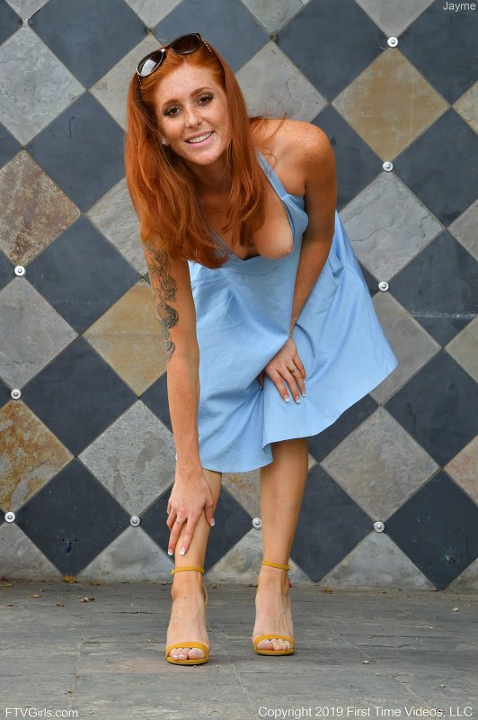 Нарядившись в короткое платье без трусов и отправившись на прогулку, рыжеволосая девица задирает подол и засвечивает бритую письку перед камерой. Вернувшись же домой, сексуальная стройняшка с маленькими сиськами устраивалась на стуле и раздвигая промежность нежно ласкала возбужденную вагину.