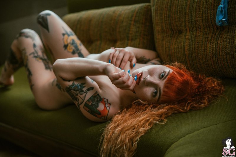 Возбуждающе позируя на диване у себя дома, развратная и довольно красивая рыженькая шлюшка лишается нижнего белья и засвечивает сексуальное тело с татуировками. Чаще всего красотка поворачивалась бритой писькой, а порой подкаченной попочкой, одновременно с этим поглаживая маленькие сиськи руками.