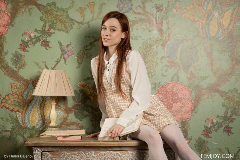 Широко раздвигая в разных позах свои длинные красивые ноги в обтягивающих чулках, стройная рыженькая девица во всех подробностях показала нам свою сочную бритую пизду, похотливо выпячивая крупным планом голую упругую задницу с раскрытой промежностью.