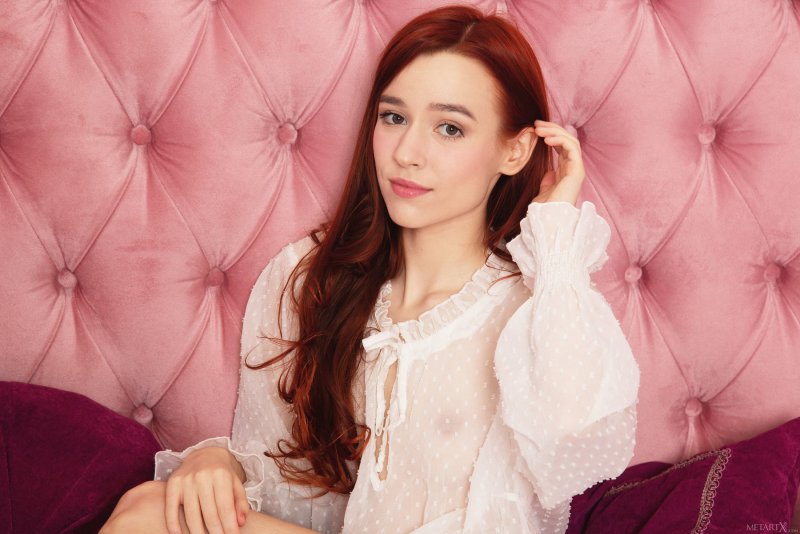 Страстно сорвав с себя всю одежду и без стеснения выставив на показ свои самые интимные места, голая рыжая телка с маленькими сиськами развалилась на диване с максимально раскрытой промежностью и вовсю дрочит перед камерой свою бритую темную пизду, умело теребя пальчиками чувствительный клитор с половыми губами.