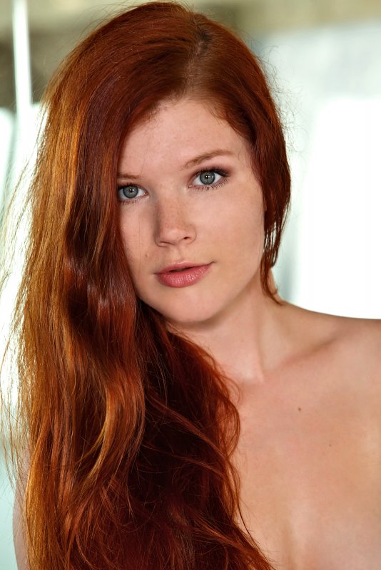 Рыжая девушка с сексуальным телом раздвинула ноги