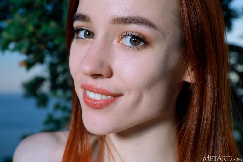 Дерзко и страстно сорвав с себя всю одежду, бледная рыжуха открыто показала на камеру свои маленькие титьки с острыми сосками и принялась без остановки двигаться на фоне природы в разных эротических позах, с самых лучших ракурсов раскрывая для нас свою маленькую попу и большую бритую пизду.