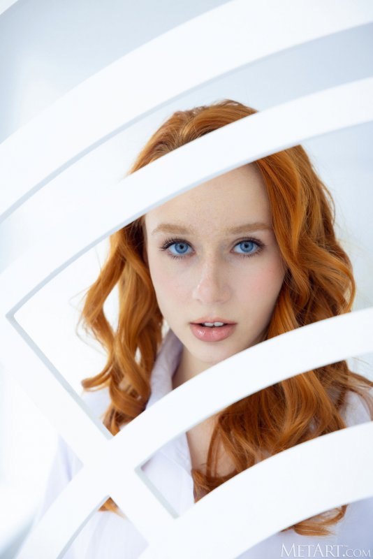 Эротично позируя перед камерой и медленно сняв с себя рубашку, нежная рыжуля в длинных чулках оголила миниатюрные прелести, а потом крупным планом повиляла своей упругой попочкой и широко раздвинула стройные ножки, с разных ракурсов засвечивая гладкую сладенькую писю.