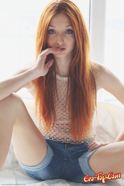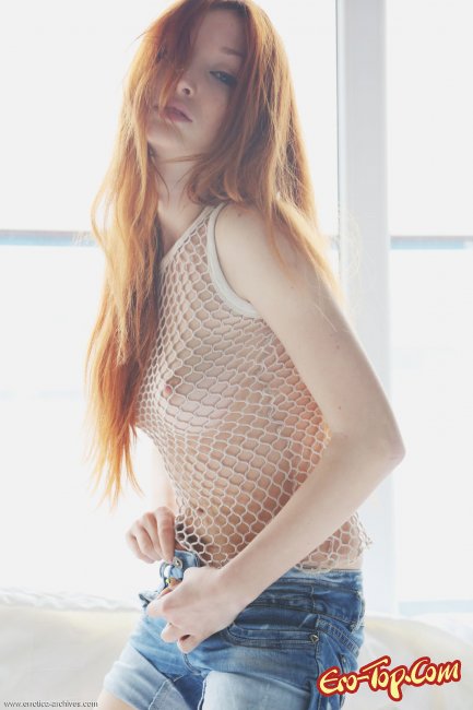 Молодая, сексуальная девушка, рыжая бестия, снимает короткие шортики и прозрачную майку, открывая нам своё превосходное, стройное тело. У девушки красивая упругая грудь, возбуждающая гладко выбритая киска и подтянутая попка с аппетитными ягодицами.