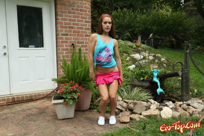 Сексуальная, рыжая девушка Kimberly Brix поливает лужайку на своём дворе. Делает она это без трусиков с голой попкой и киской. В процессе поливки, девушка направляет струю с водой из шланга в свою нежную киску, лаская ею клитор. Очень милая фото сессия с яркими красками, активирующая сексуальную фантазию зрителя.