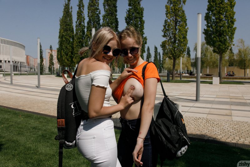 Эротика » Русские девушки » Русские подружки показали сиськи на улице
