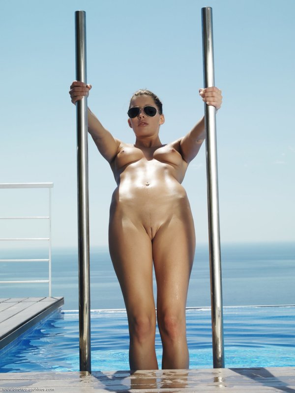 Прогуливаясь у бассейна и порой забираясь в воду по пояс, стройная и абсолютно голая девушка в одних только солнцезащитных очках получала от процесса массу волнующих эмоций и позволила нам понаблюдать за ней через объектив фотокамеры. Наслаждаясь своей откровенностью, красотка с небольшой грудью особенно тщательно показывала нам свою бритую письку с влекущими половыми губками.