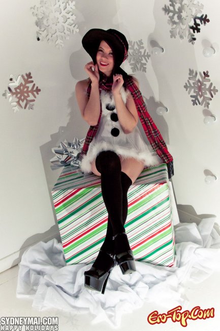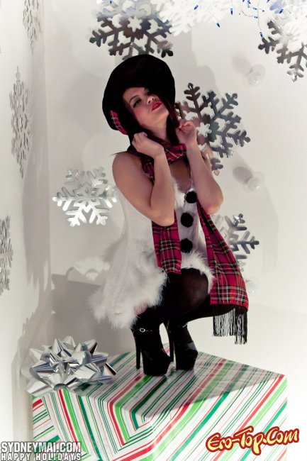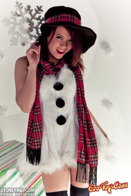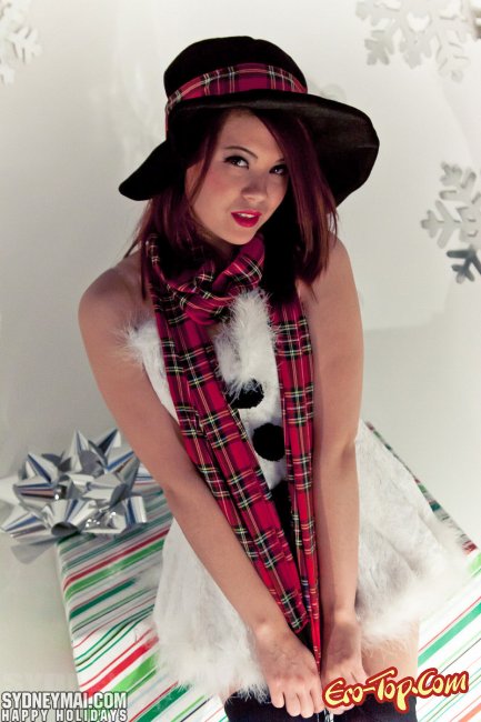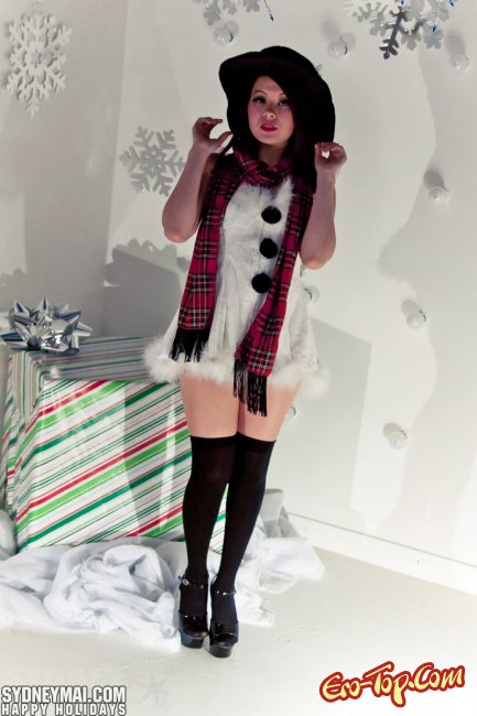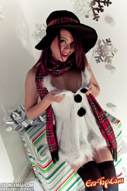 Очаровательная девушка в шляпе стоя на фоне заснеженной стены со снежинками сексуально позирует на фото камеру. Телочка с азиатской примесью поворачивается к нам спиной и показывает свою прекрасную попочку и длинные ножки в черных чулках. Она оголяет свои маленькие упругие груди, а потом снимает трусики и раздвинув ножки показывает свою промокшую писю.